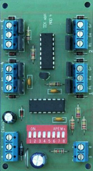 vier S-88-Optomudule. Die Verdrahtung zur Anlage erfolgt durch
