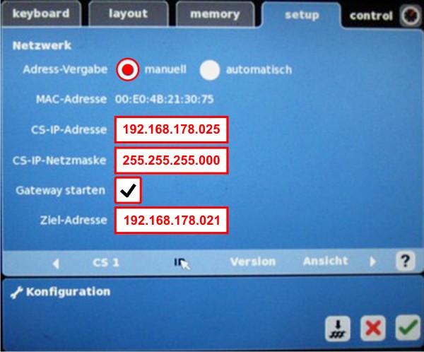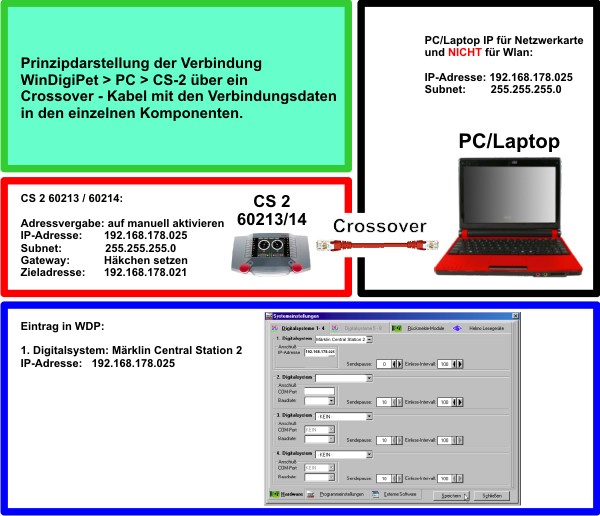 Zieladresse (IP) in der CS-2 die sein muss, die des MoBa PC´s bzw. Laptops.