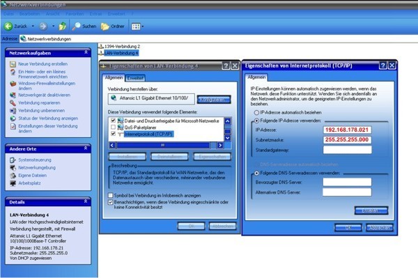 Sie sich bitte die IP-Adresse und die Subnetzmaske. In unserem